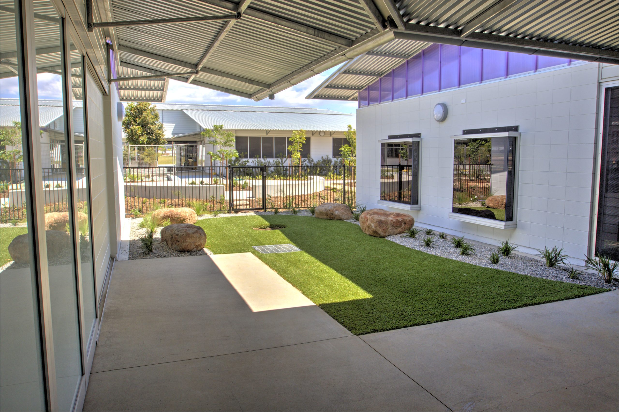This modern teaching facility creates an o pen learning environment with large amounts of glazing including a dedicated skylight running down the centre of the roof line.